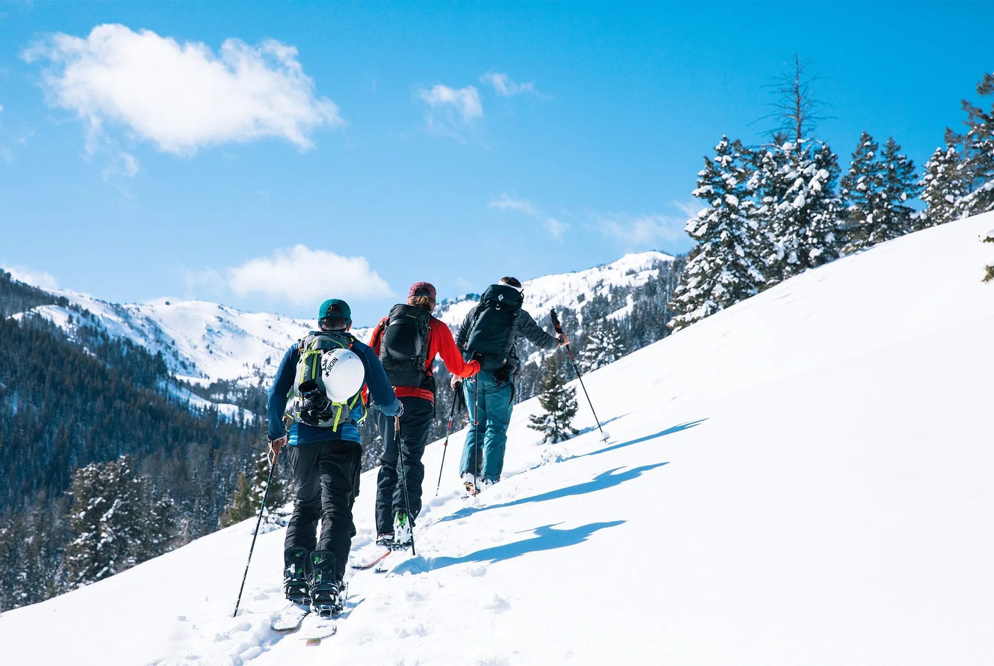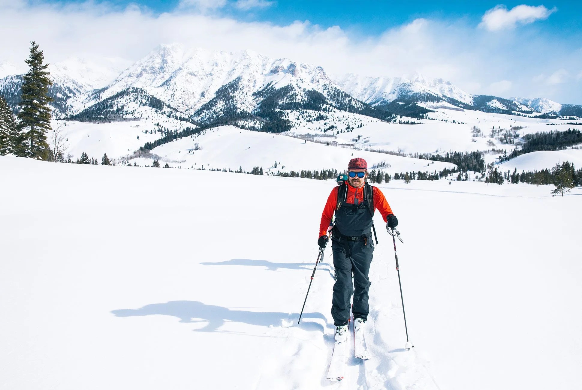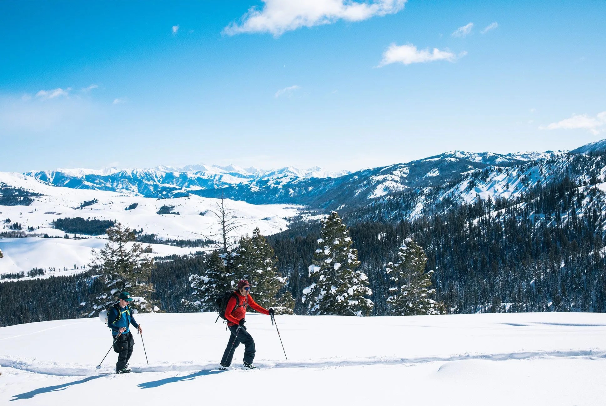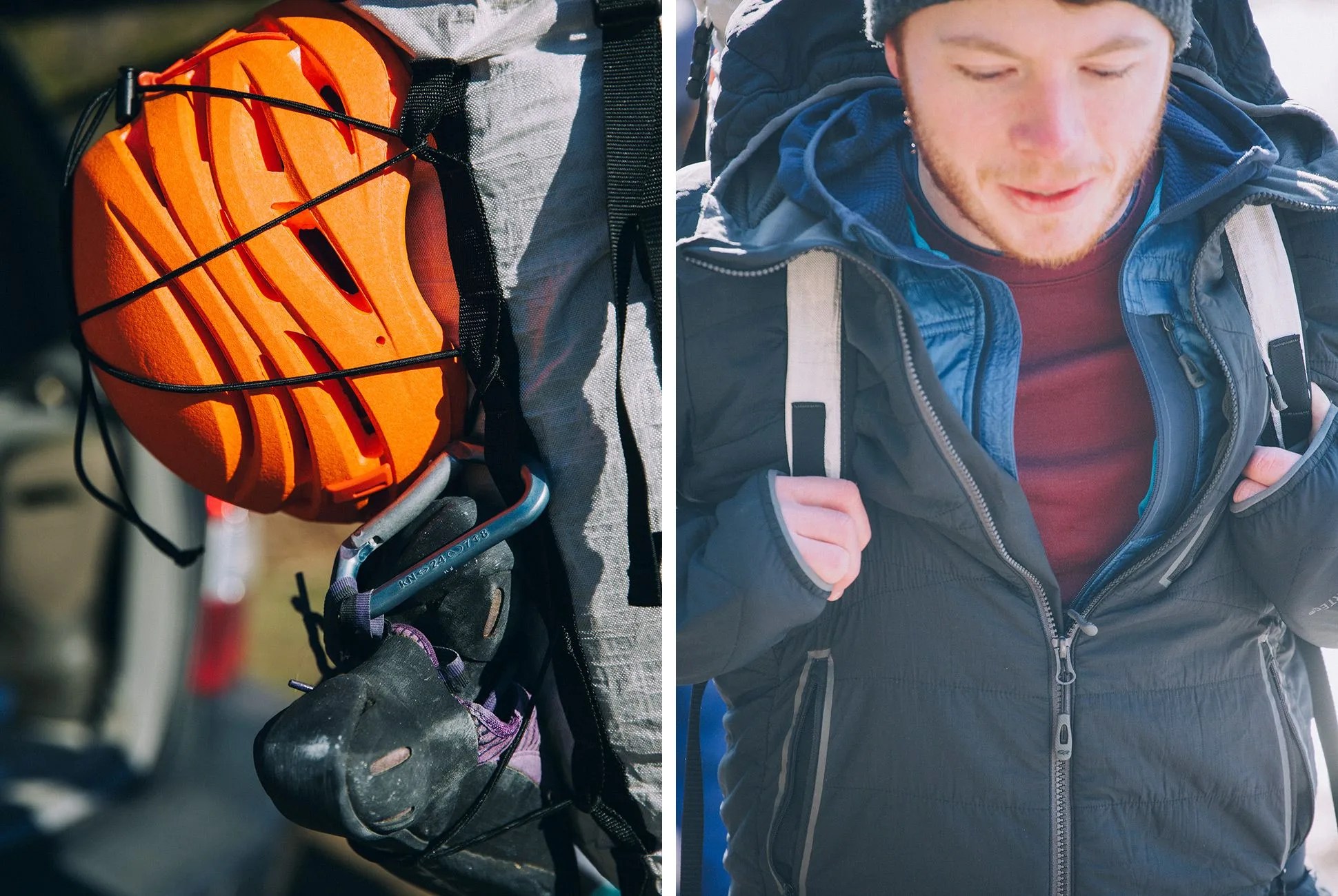 Writers AJ Powell and Tanner Bowden testing jackets in the Idaho backcountry.“It’s all about adaptability,” says Alex Lauver, Outdoor Research’s product manager for outerwear. “We created a solution for changing conditions and changing environments.” Both the Uberlayer and Deviator were designed with two sports in mind — climbing and ski touring — though they can certainly be used in other applications. “During a ski tour, you’re going to work up some heat and moisture going upwards. Ideally, you wouldn’t want to have to de-layer before you start going up, then put a bunch of stuff on at the top, then come down and switch it all back out,” says Lauver. “We created something that adapts to a lot of those types of conditions. You only need to decide whether or not you need some waterproofness for the way down.”