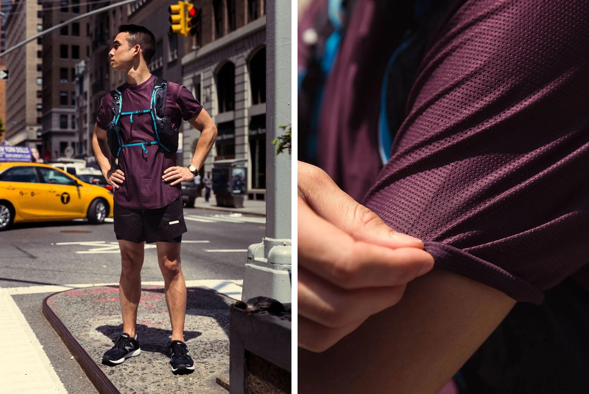 Iffley Road is another running brand embracing a heritage aesthetic through technical running threads. The Cambrian Stripe is stylistically simple with a slim cut, slightly longer sleeves and a striped pattern, but features like the polyester dri-release microblend fabric and a hidden stash pocket make it an ideal layer for running. The Hampton Shorts are equal parts stylish and functional, with a flat-front design and a mesh inner. Balega’s ultralight socks and a mesh-backed, run-dedicated cap from Ciele round out the smaller but no-less-important details of this kit.