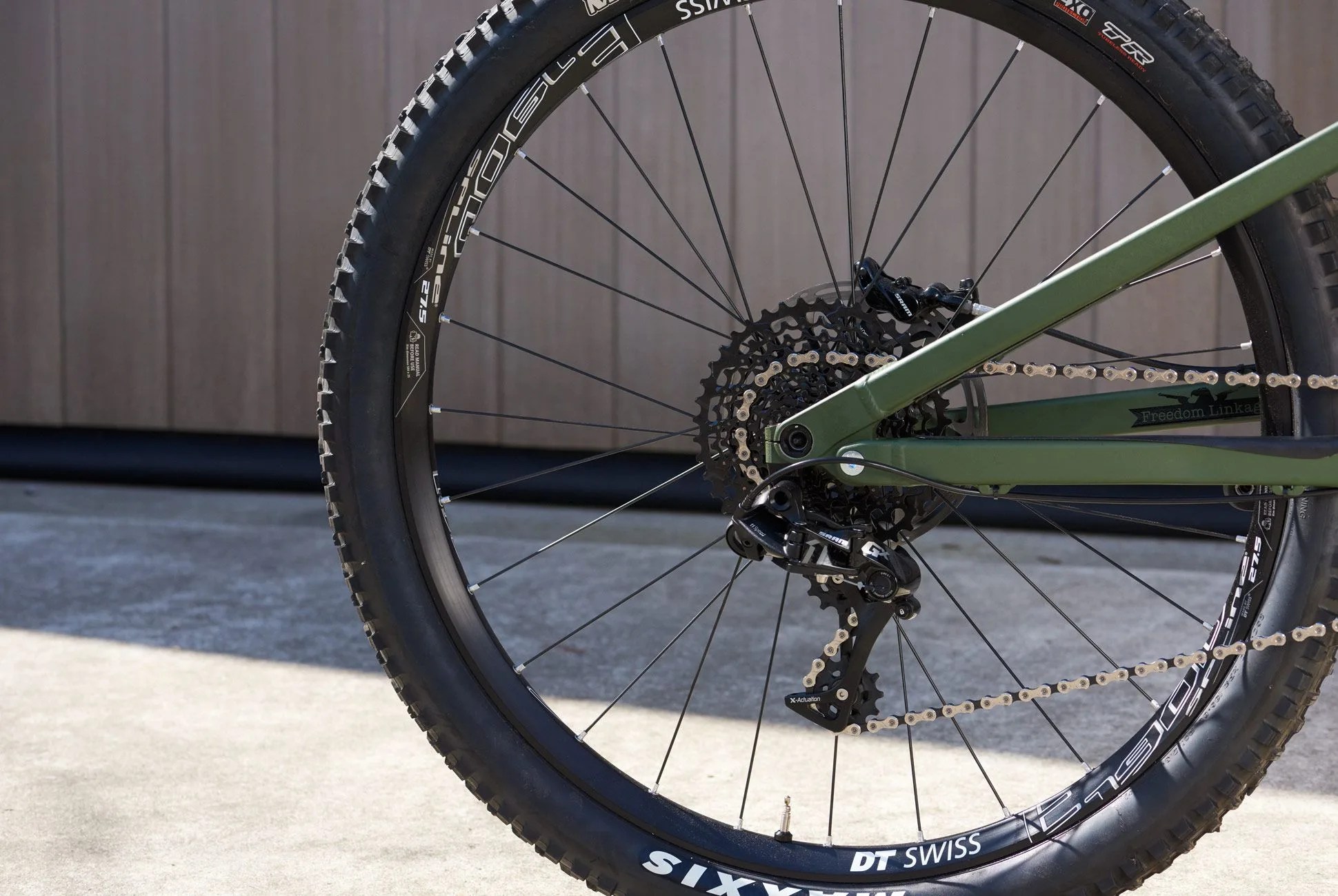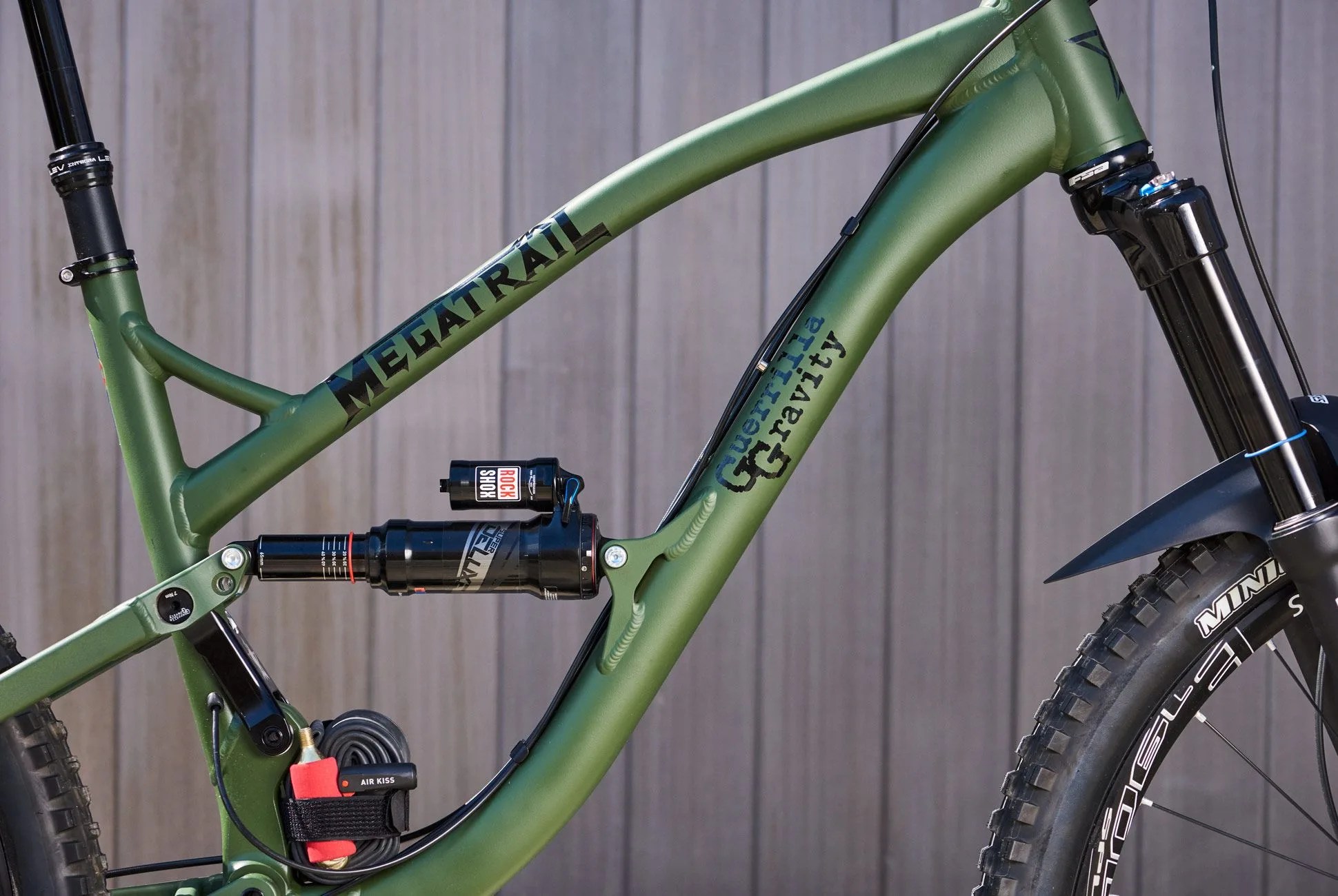 Based in Denver, Colorado, Guerrilla Gravity is committed to producing a highly customizable bike for the same price as the big boys. Owners can tweak everything from paint and graphics to groupsets. The Megatrail can be switched from 150mm to 165mm of travel by swapping out one bolt — trans- forming it from trail ripper to downhill slayer in less than five minutes. It’s like having two bikes in one.