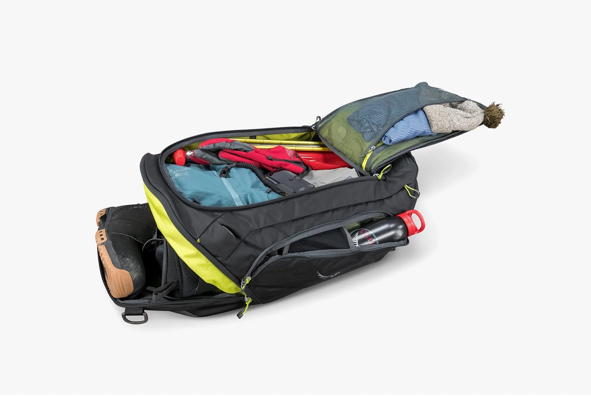 You can tell a lot about a person by how they organize their backpack. If it’s clean and tidy, with everything packed neatly into its designated spot, they’re likely a mindful person who cherishes their material possessions. The opposite of that would be my roommate, who tosses his litter and filth around our apartment without giving it a second thought. Maybe he needs one of Osprey‘s new GearKit bags. Designed to encourage thoughtful gear organization, each of the three bags (Trailkit, 40 liters; Snowkit, 45 liters; Bigkit, 65 liters) contains a plethora of technical pockets including a ventilated footwear compartment, helmet pocket, stowaway harness and straps, clamshell main compartment, dual side pockets with compression straps, several web lashing points, internal mesh pockets and a scratch-free tech pocket for sunglasses and snow goggles. The Trailkit and Snowkit are compact and carry-on compatible, whereas the Bigkit is better suited for extended backcountry expeditions.