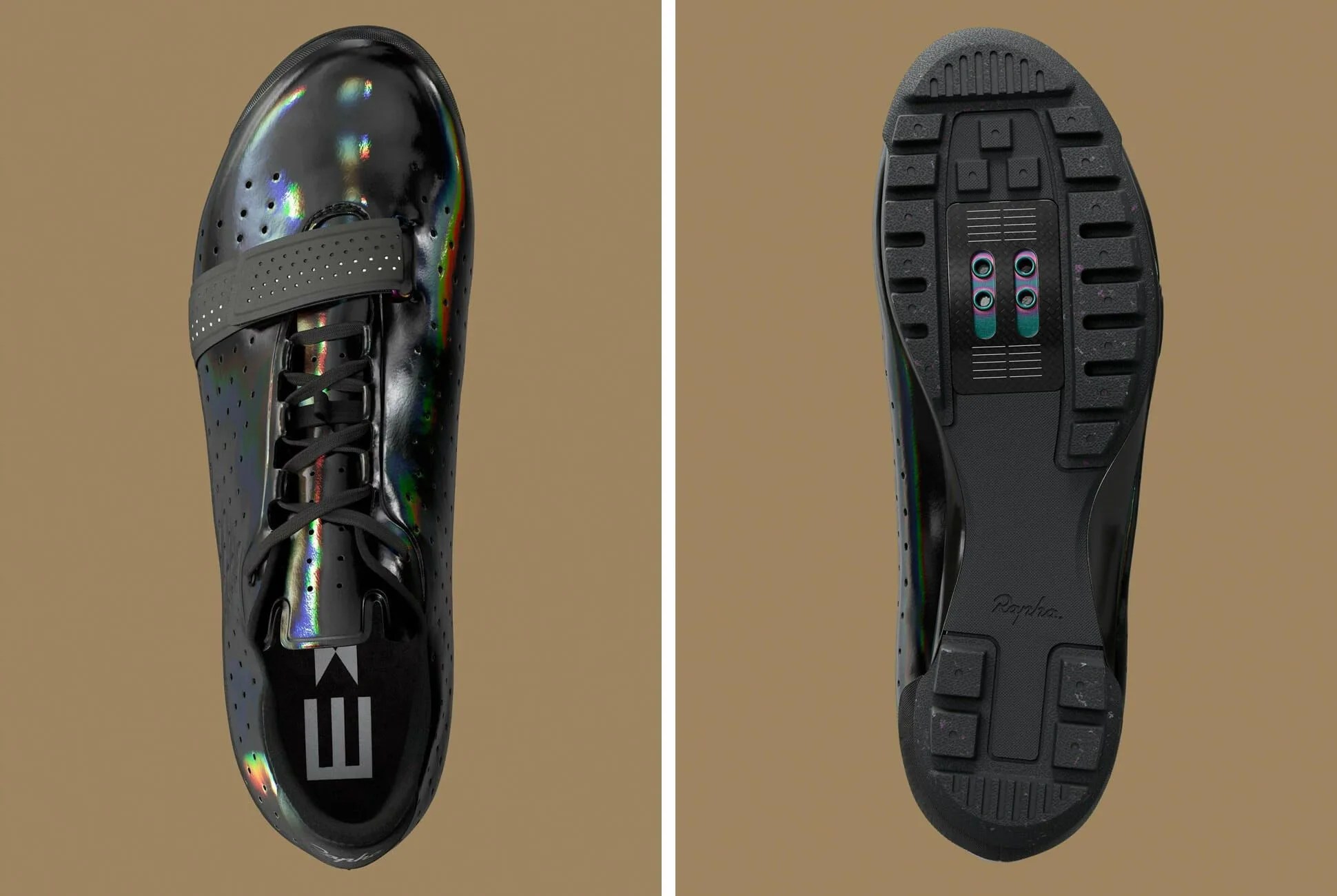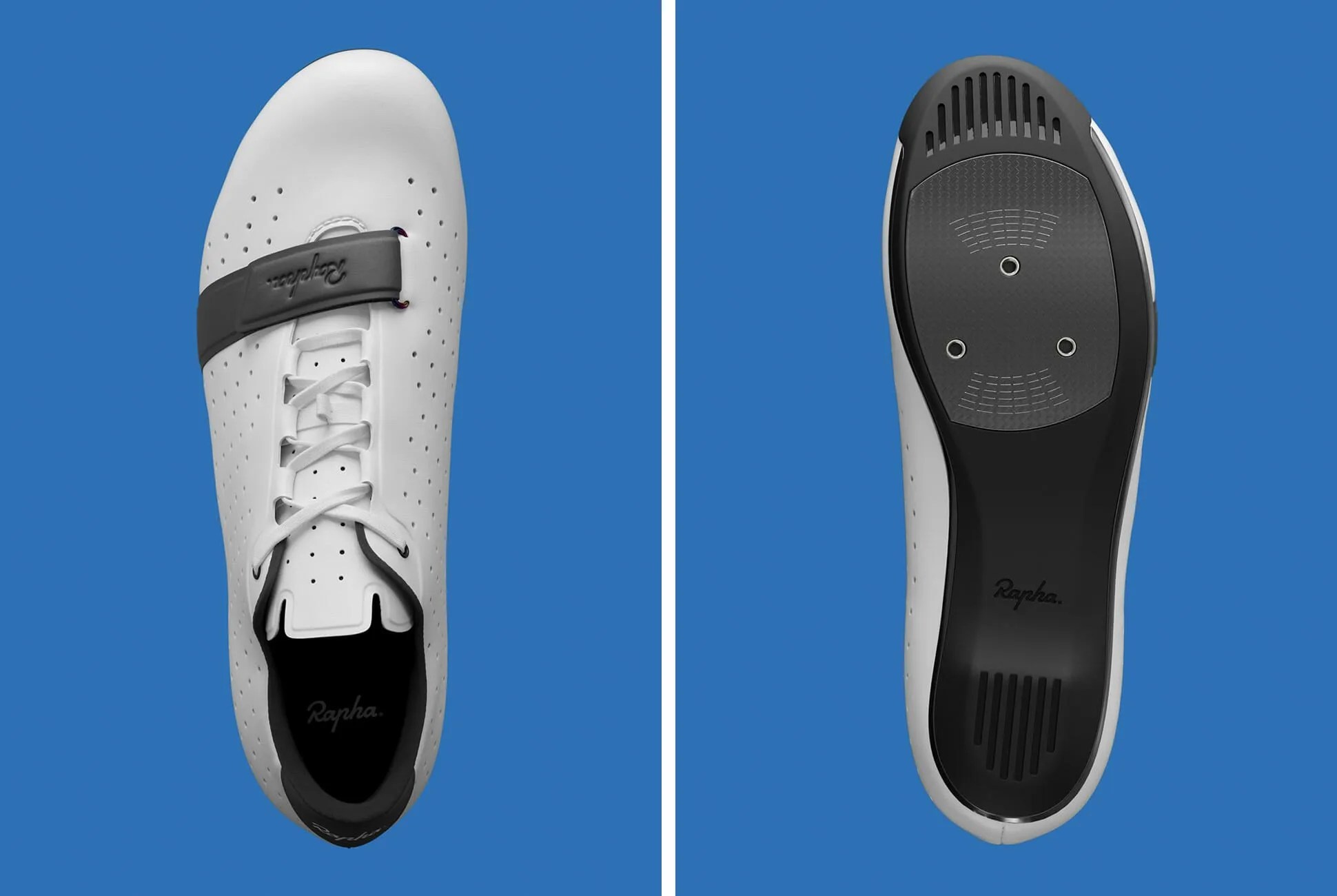 Between the two, the shoes cover the spectrum of terrain one might ride in. The Classic is a road shoe with a svelte profile and a lightweight carbon fiber plate that’s wrapped in a thermoplastic outsole for durability when moving around off the bike. The Explore is for gravel and trail riding — it has the same clean, perforated upper as the Classic but uses a lugged rubber outsole that can handle any terrain. Rapha notes that both of these shoes are suited for but not strict to these environments; Lachlan Morton, one of Rapha’s pro cyclist testers, wore the Classics during WorldTour races but also on mountain biking and bike packing trips. “No issues,” he says.