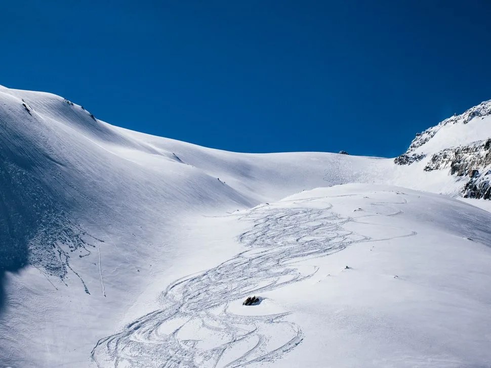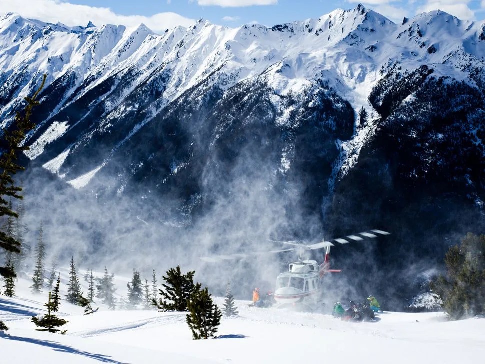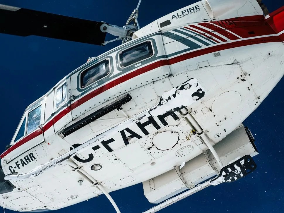 33 of us stumbled out of the Delta Calgary Airport Hotel at 5:15 in the morning and onto a bus heading three hours west in search of skiing that didn’t seem to be there. Weather reports had been dodgy for the past week, temperatures were looking more like beach weather than powder weather and snow had been a rarity in western Canada this season, but we were all holding out hope for some elusive late-season powder. The experienced were unphased after the hour of safety videos going over the numerous ways that we may be maimed or killed (whether by nature or machine) but the rest of us had a cautious stare as a Bell 212 twin-engine helicopter — our only mode of transport for the next four days — kicked up gravel as it set down 10 yards from the bus. No crowds, no tracked-out snow, no lifts; we were about to experience how good skiing could be.