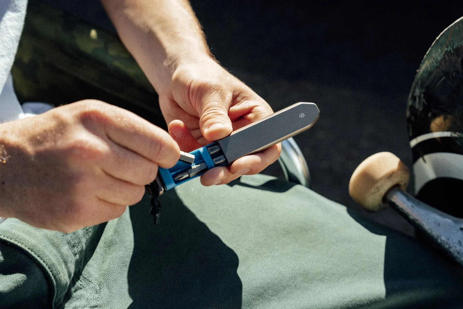 The Warrick from The James Brand takes a different route to solve this issue. It’s a keychain-sized dedicated screwdriver measuring 3.6″ L x 0.875″ W x 0.5″ D made from anodized aluminum that includes storage for up to four WIHA bits. Its so-called “Torque Drawer” design promises to create more torque for turning than other multi-tools.