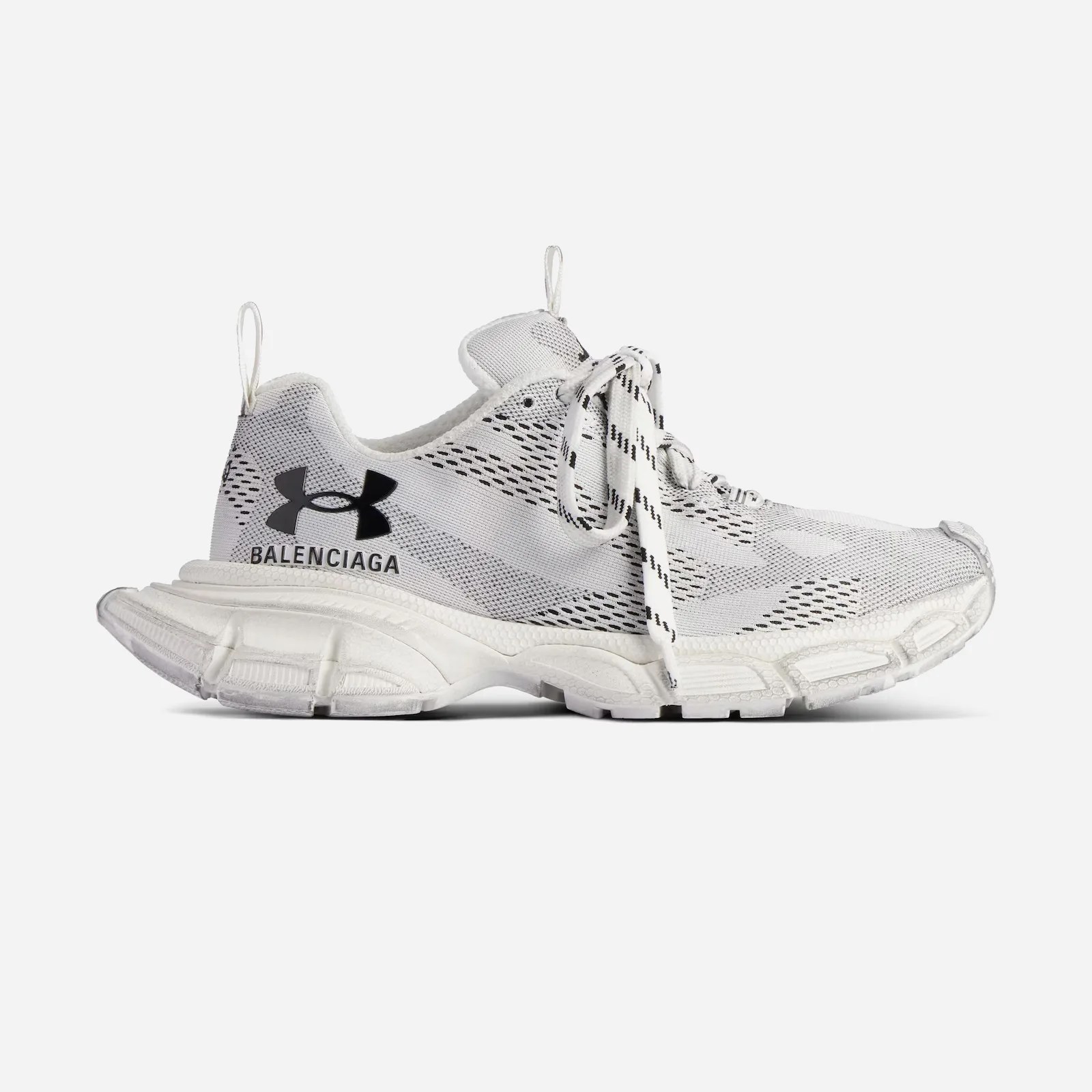 A pair of Balenciaga x Under Armour 3XL sneakers in white shown facing diagonally against a light grey background.