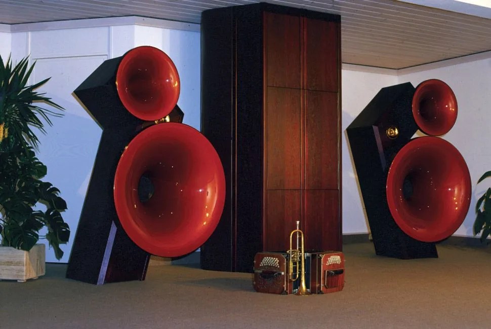 Powered horn loudspeakers leverage this effect much in the same way, to squeeze impressive sonic results from very low levels of amplification. This makes them often an intriguing option for pairing with acoustically superior but comparably underpowered tube-based amp systems. Unfortunately, horn loudspeakers must be very large in order to provide adequate levels of bass response, making many designs highly impractical for anyone who can’t afford a private Walmart to put them in.