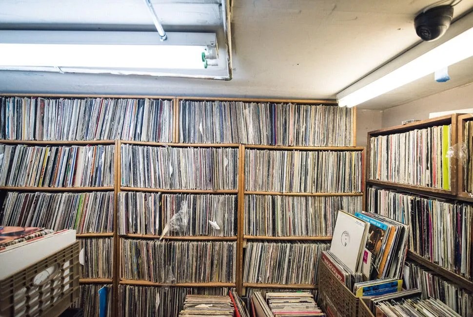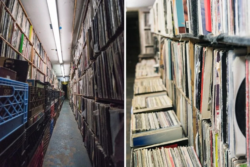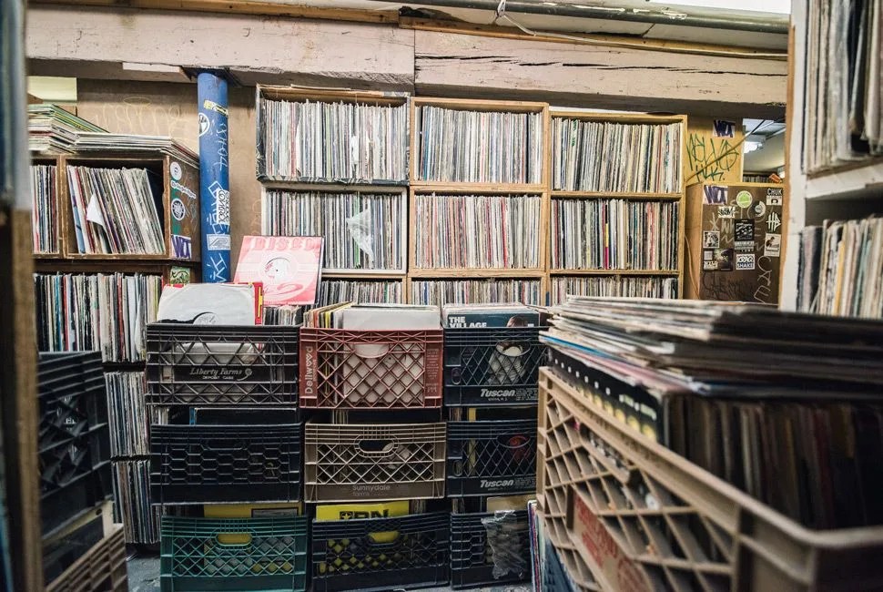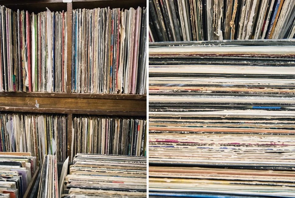 Once they’d cleaned it out, they filled it up again. Into the upstairs went shoes and camera parts and a minibike motorcycle and DVDs, CDs, cassette tapes, tchotchkes, Playboys. The basement got the records, crates upon crates, from estate sales and donations. They still get about three shipments in a week, because they sell fast at $2 a pop, or around $150 per crate, which hold 100 records. DJs dig through them to find samples. Hardcore collectors (obsessives, more likely), search for gems; Frank claims there are some $100 finds down there. Oh, and certain do-it-yourselfers buy crates of “junk” records for arts and crafts, to make coasters. Don’t ever say your cousin’s band’s time in the studio was good for nothin’.