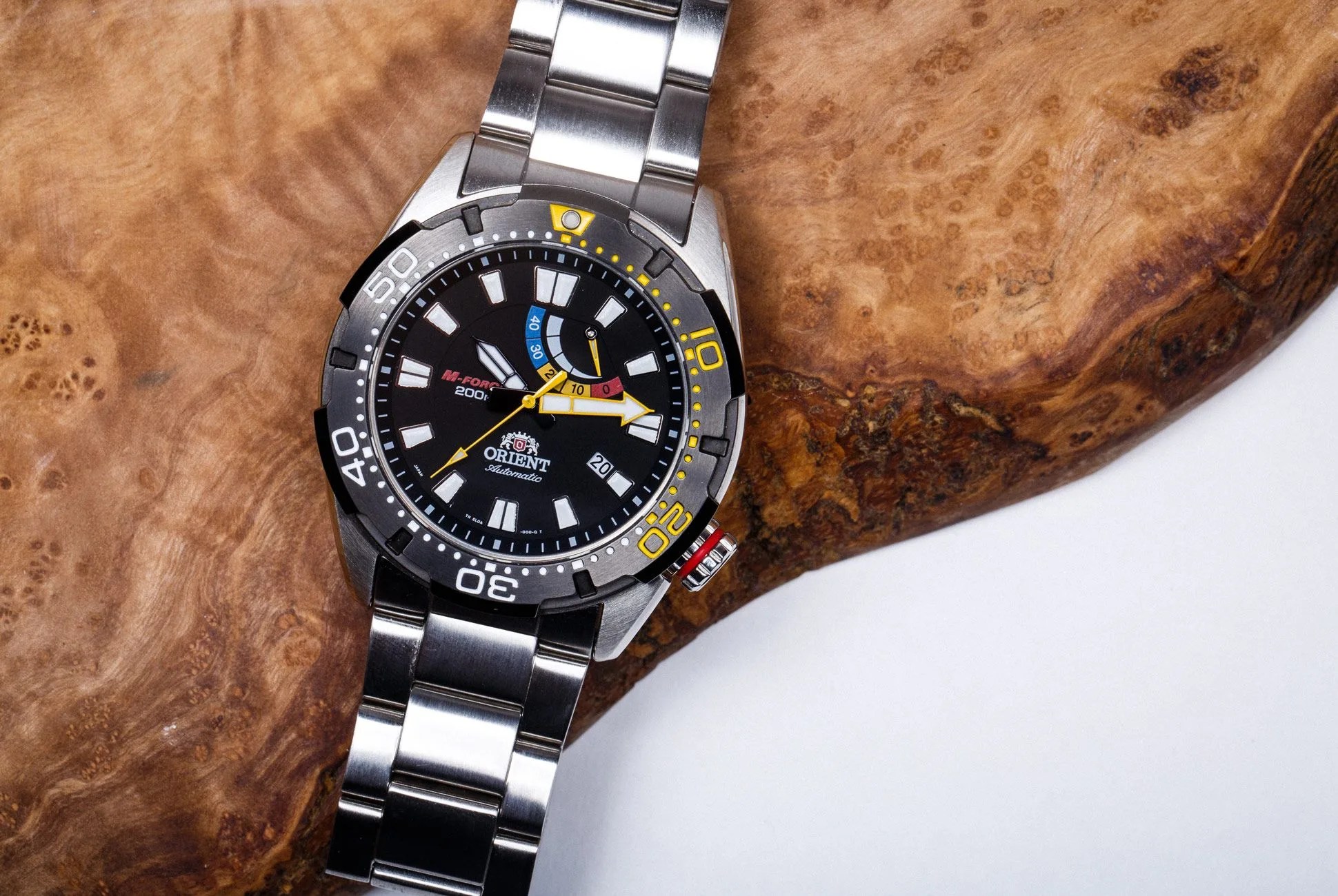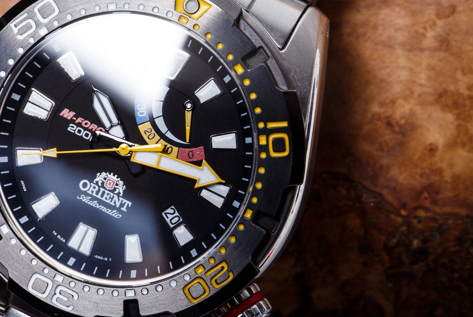 My internal buying logic usually dictates that I buy something visually reserved, ideally small and likely expensive. But the “summer beater” concept lets me throw that out the window: pick up something cheap and tough enough to survive a swim and stay in one piece after being bounced off a boulder, but that also has fun warm-weather vibes. For all this, the Orient M-Force Bravo is perfect.