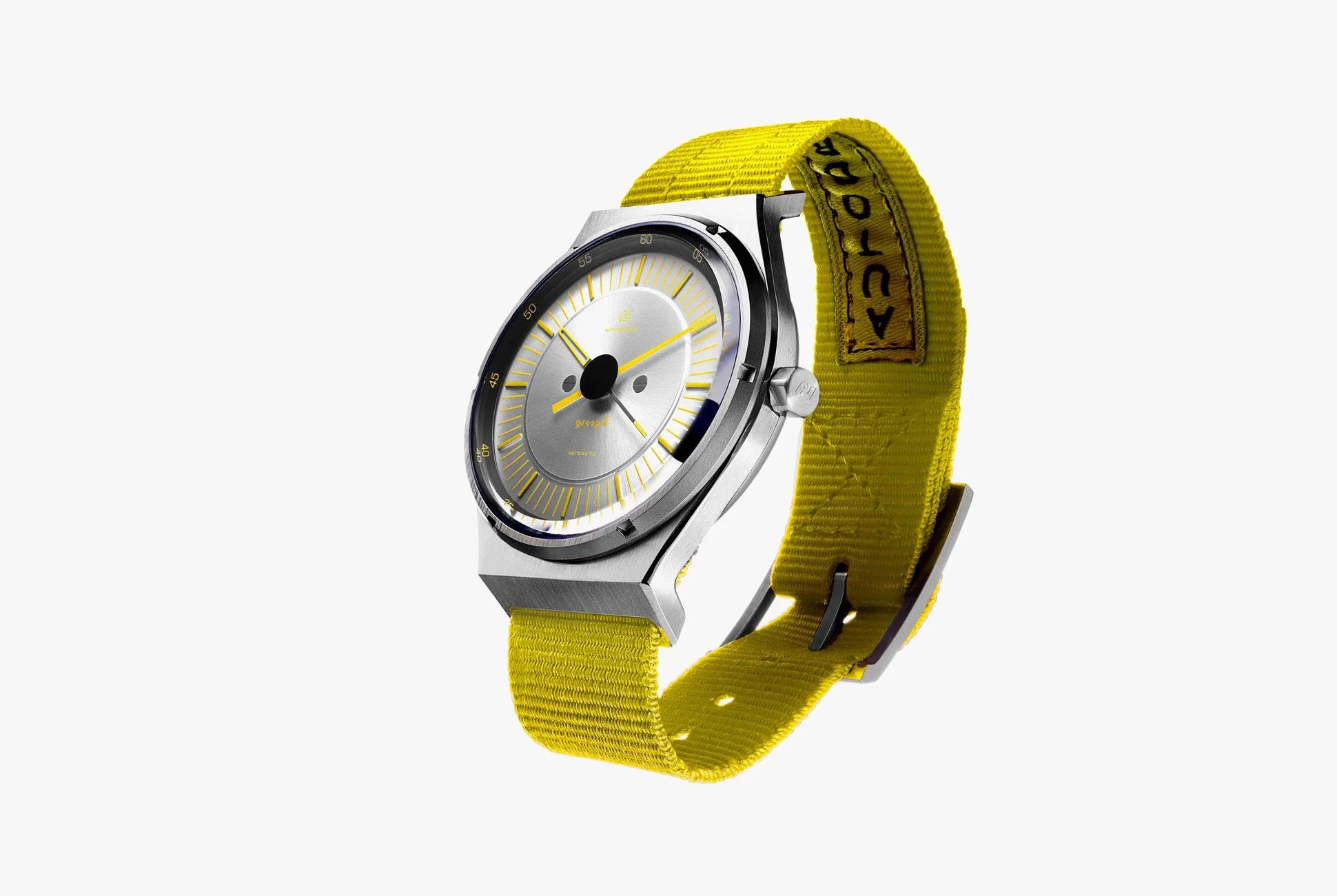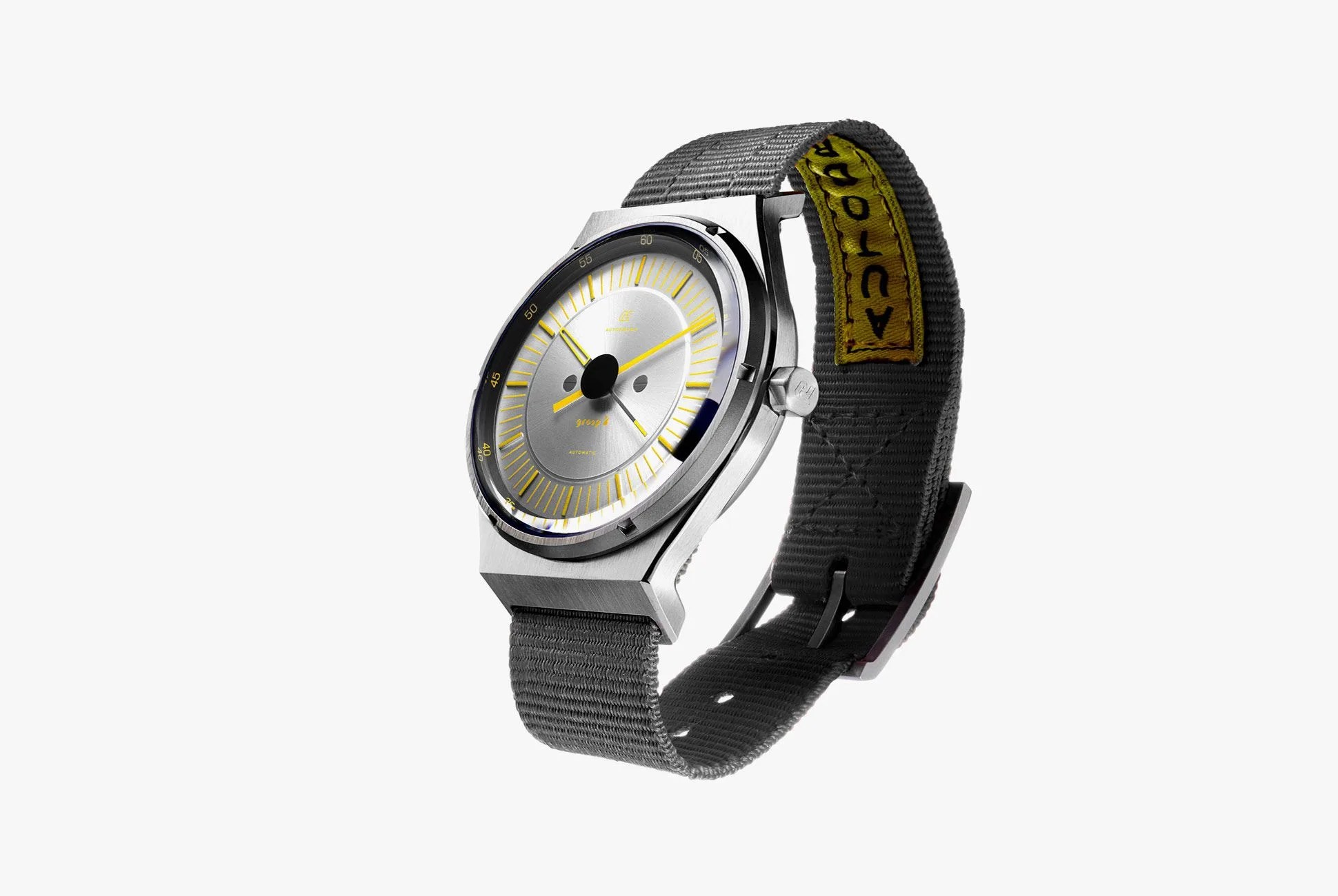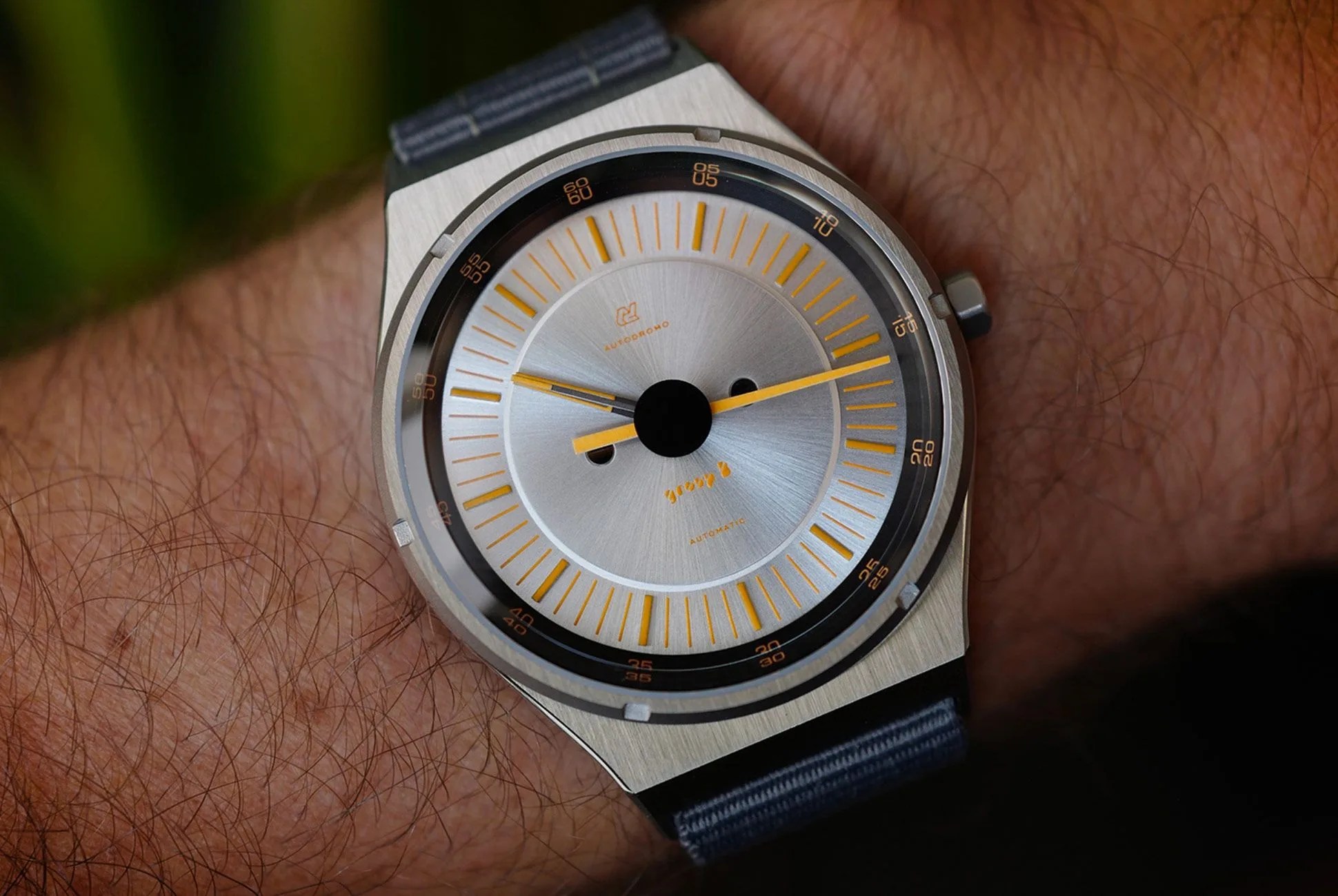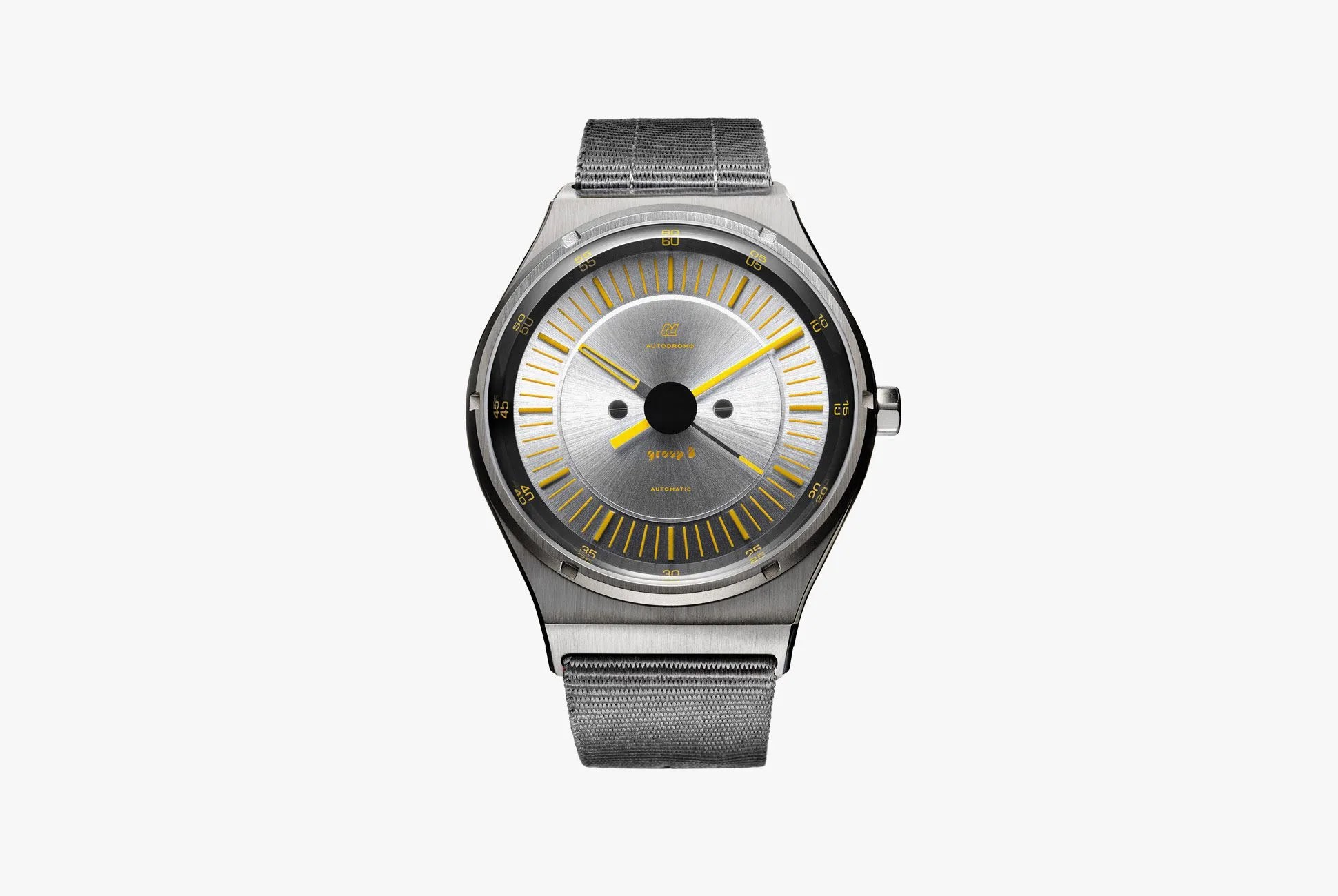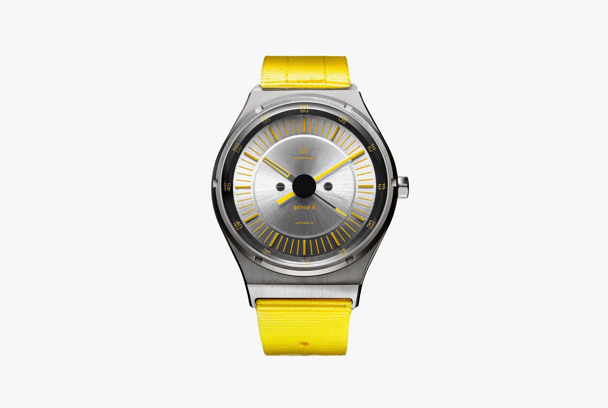 The Group B has been out for some time now, but Autodromo reinvigorated the lineup with a new sunburst silver dial with yellow accents in lieu of the standard watch’s black dial. The silver and yellow colorway was available on the larger limited edition Evoluzione, but now, thankfully, anyone can pick it up — it certainly gives the watch a cooler, toned-down look. The watch comes in an aluminum box along with two nylon straps, one in gray and one in yellow.