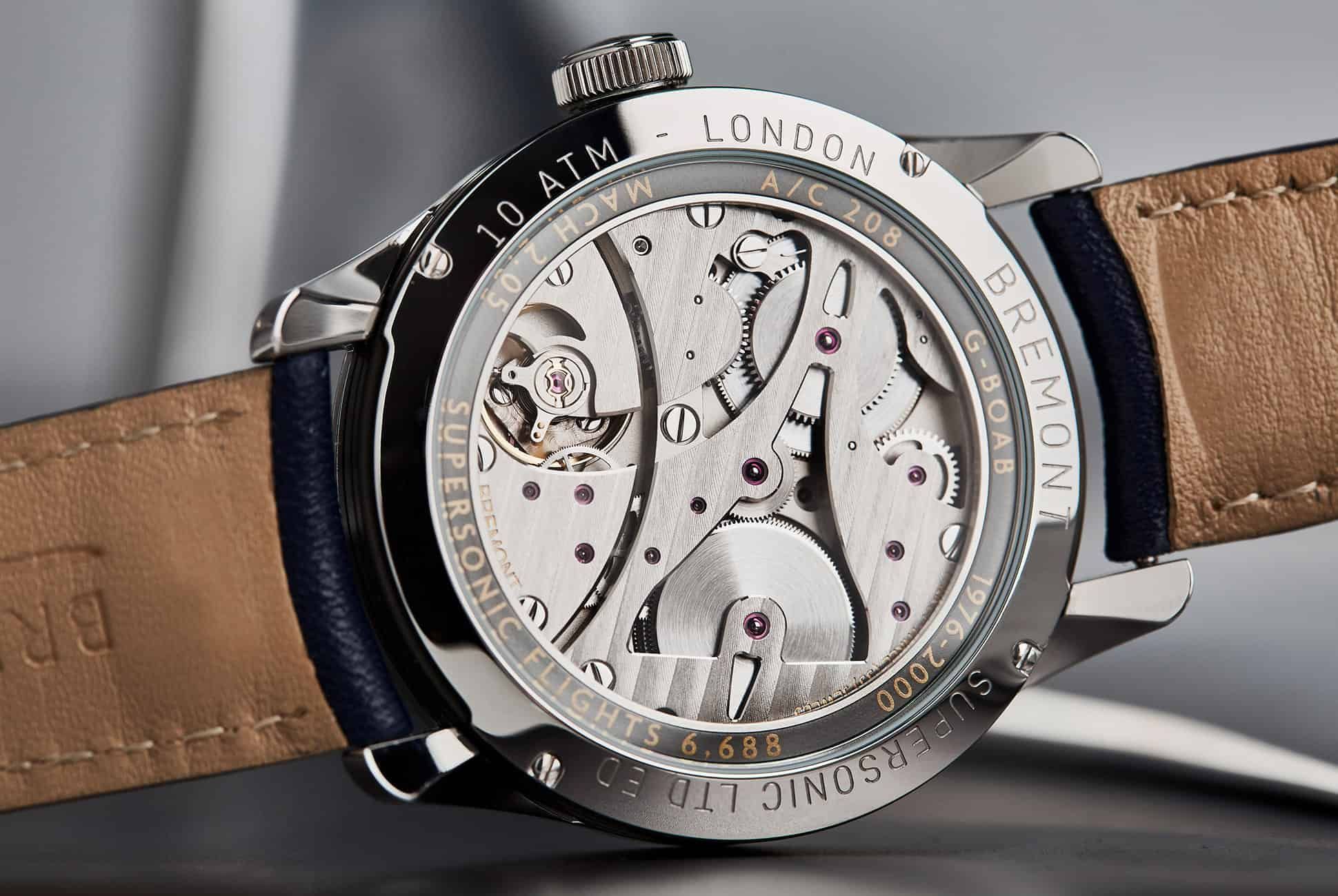 Bremont’s newest creation is the Supersonic, released in time to honor the 50th anniversary of the Concorde, which flew over 2.5 million British Airways passengers at over twice the speed of sound. The eighth in Bremont’s historical limited edition series, each Supersonic actually incorporates a piece of a G-BOAB Concorde known as “Alpha Bravo,” the third Concorde to become part of the British Airways fleet. These aluminum pieces have been machined into decorated rings that fit beneath the transparent case back crystal and incorporate a description of Alpha Bravo’s main attributes, including number and registration, number of supersonic flights, top speed and more.