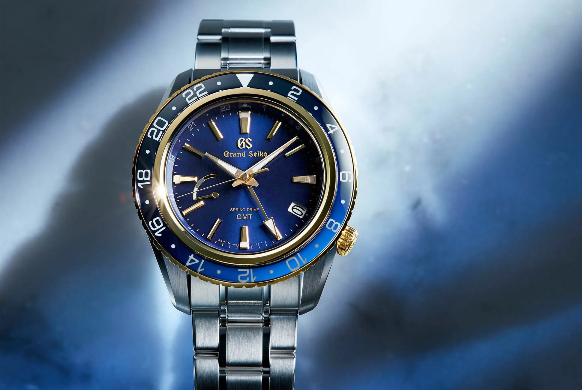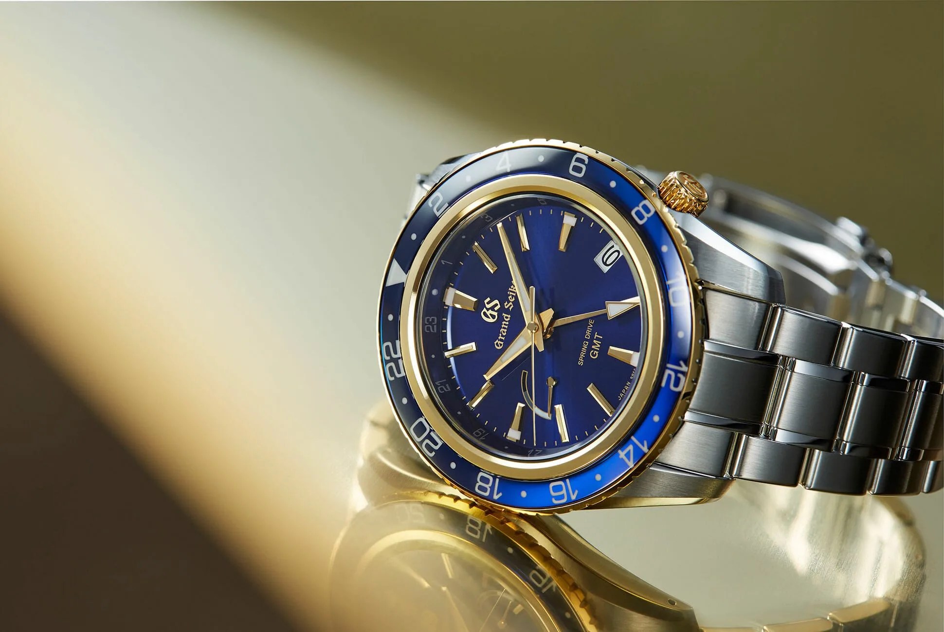 The use of gold in this SBGE248 model appears to drive the price up significantly in comparison to similar models in steel. Price for the Grand Seiko Sport Spring Drive GMT in gold and blue is $11,500.