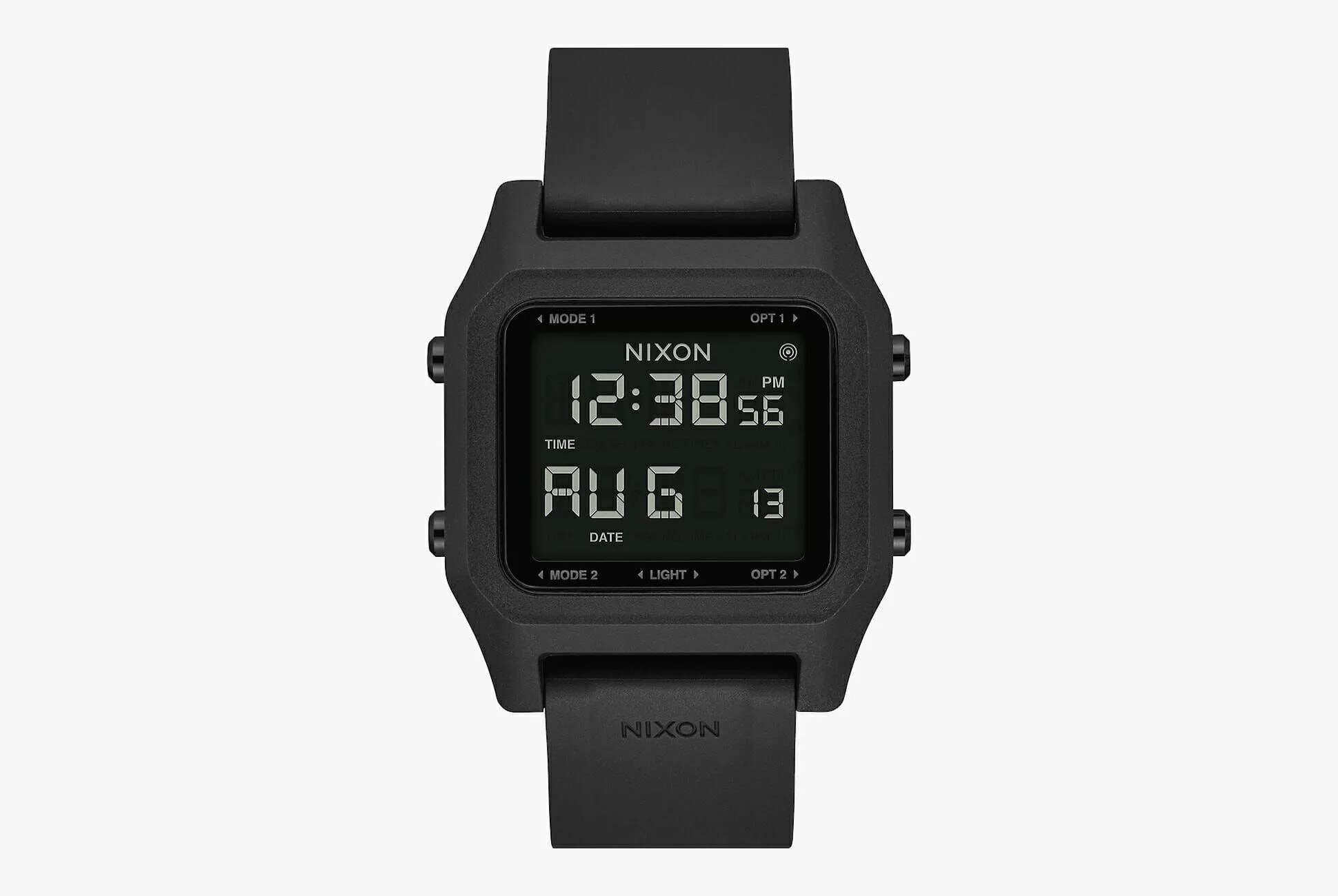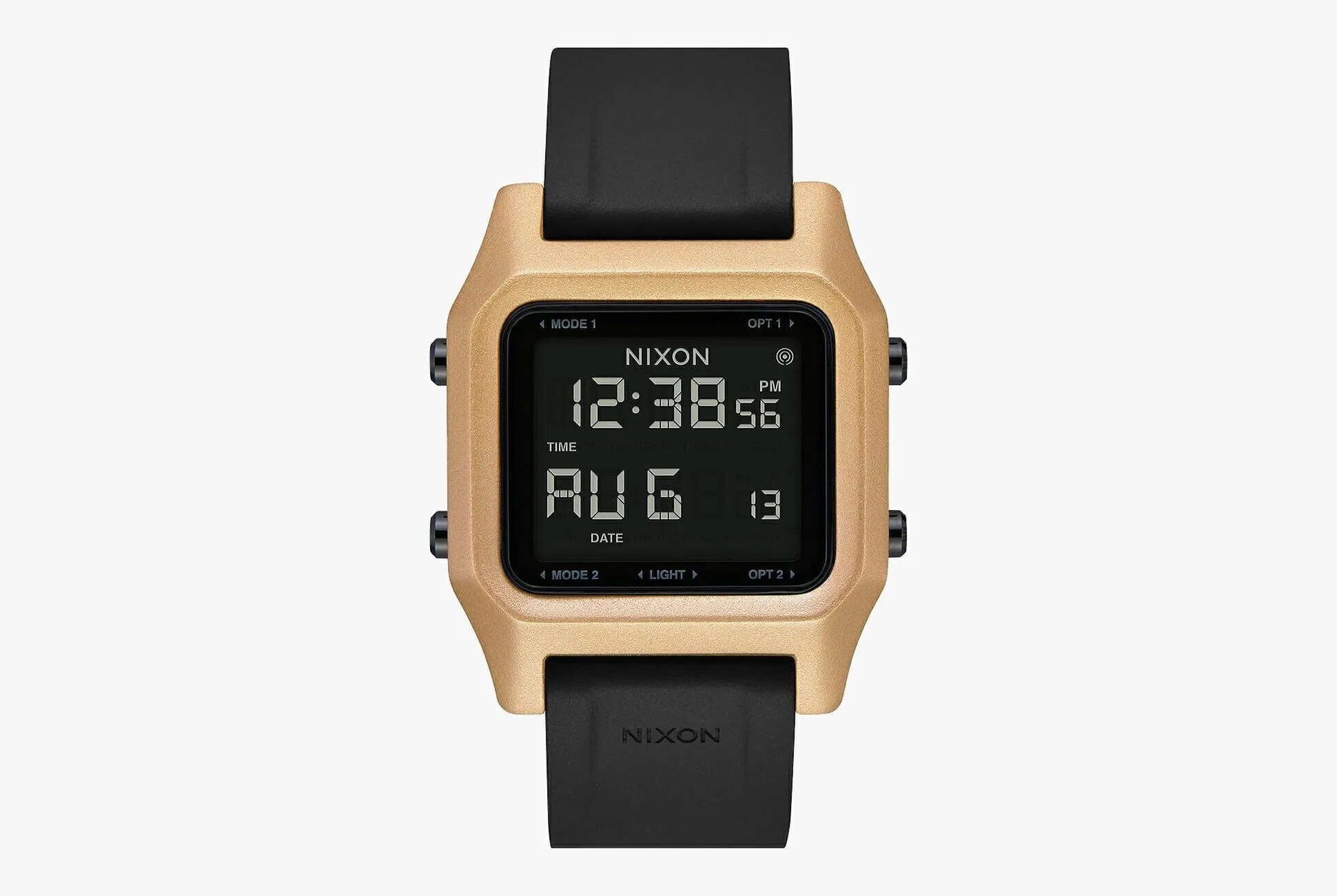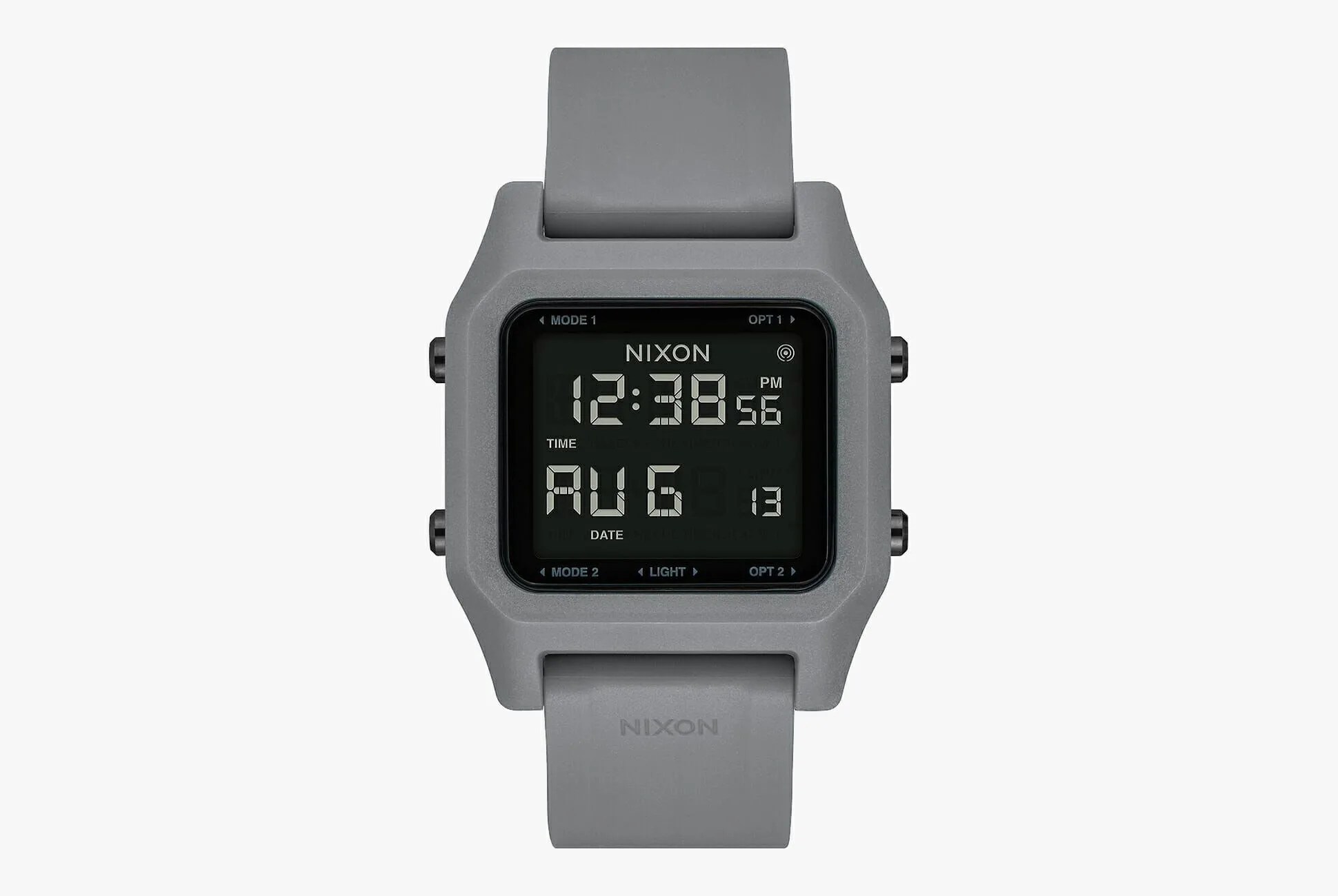 Nixon makes rugged digital watches that just about anyone can afford, perfect for hiking, surfing, or simply navigating the city. The new Staple is a slim-profile watch with a customizable digital readout, currently available in five colors, whose screen allows the user to display a combination of time; day/date with auto calendar through 2099; chronograph with 1/100 second resolution; timer; and alarm.
