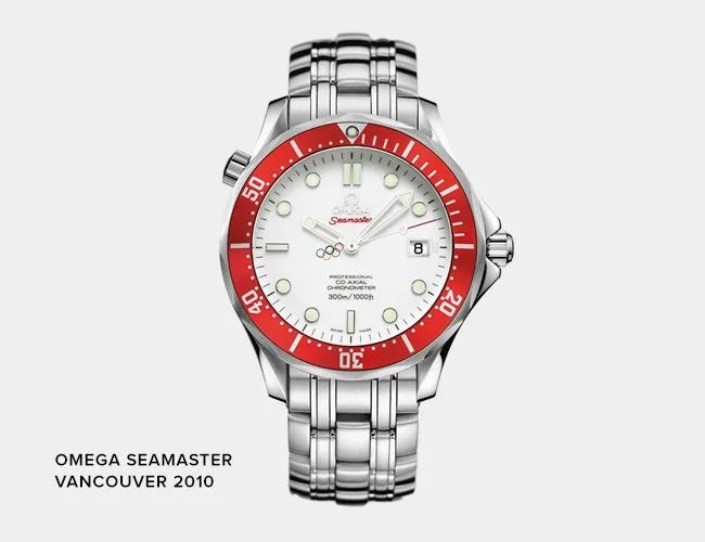 In 2010 Omega went full Canuck in designing a special edition for the Vancouver Winter Games. Fitted with a crisp white dial and a bright red aluminum bezel, Omega selected their popular Seamaster 300M Co-Axial dive watch and offered both 36- and 41-millimeter versions. With Olympic rings serving as the counterweight on the seconds hands and a special case back design that honored Canada’s First Nations people, it was a great watch; it was limited to 2010 units in each size.