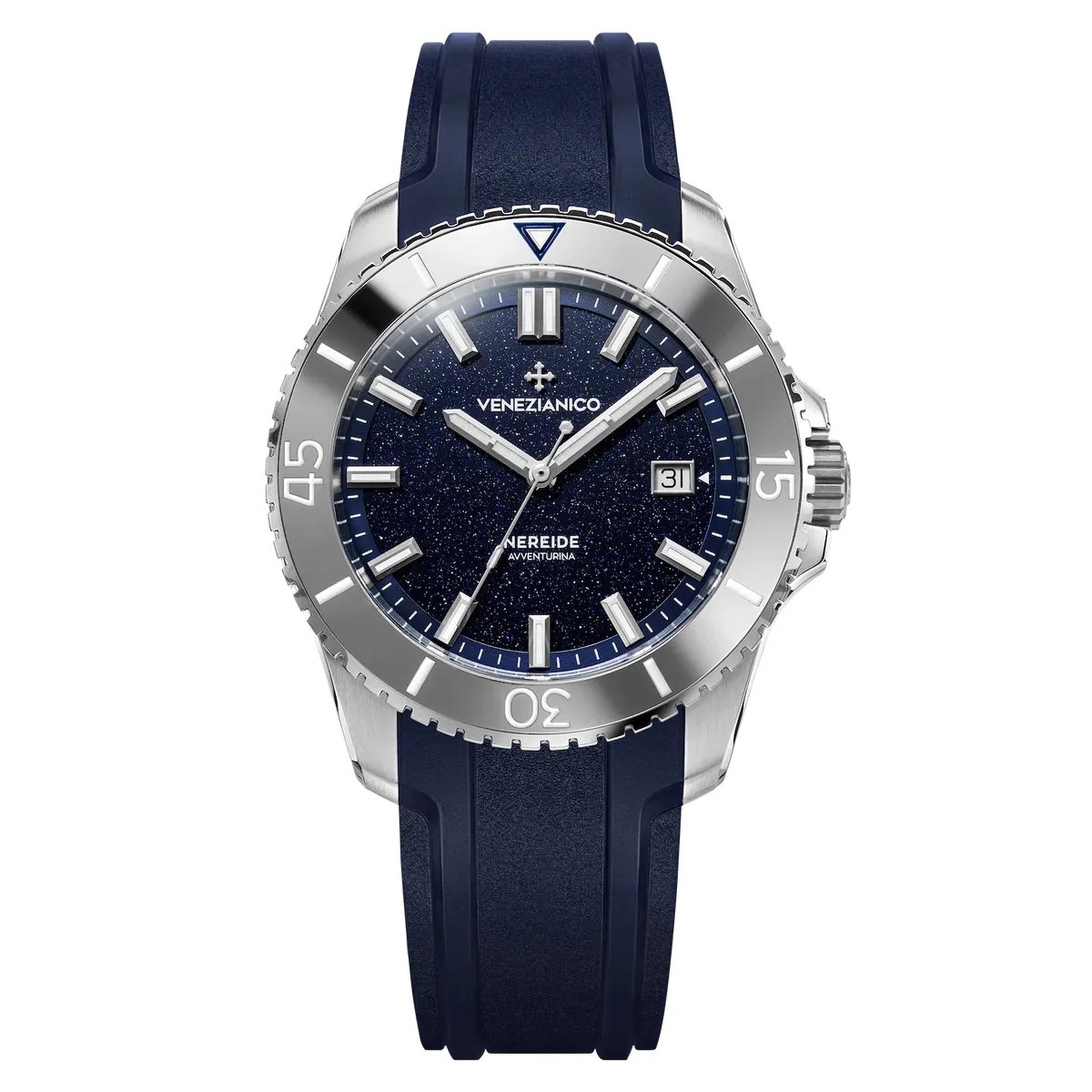 One of a few “Avventurina” watches offered by the brand, the Nereide stands out for the fact that it’s a 200m capable dive watch sporting the starry dial. It also features an Italian-made rubber strap perfectly fitted to the case, along with a heavy-duty Tungsten bezel insert.
